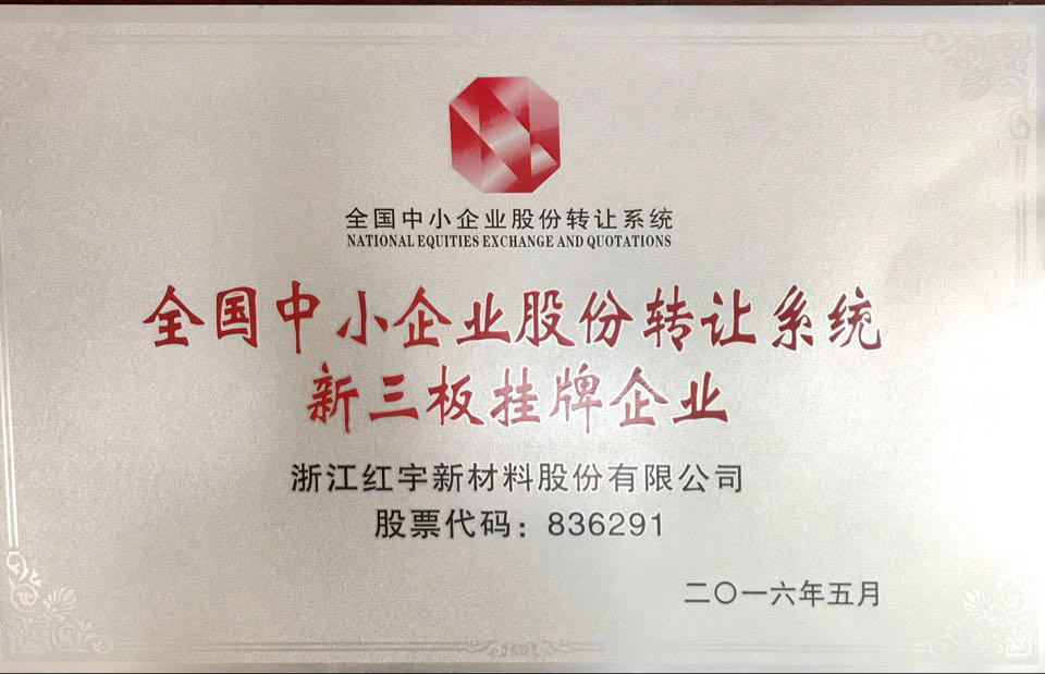 浙江紅宇新材料股份有限公司成立于2010年,是一家致力于膨潤土技術研發、規模化生產、內外銷售于一體的高新技術企業,于2016年4月在全國中小企業股份轉讓系統(新三板)掛牌成功,股票代碼836291。